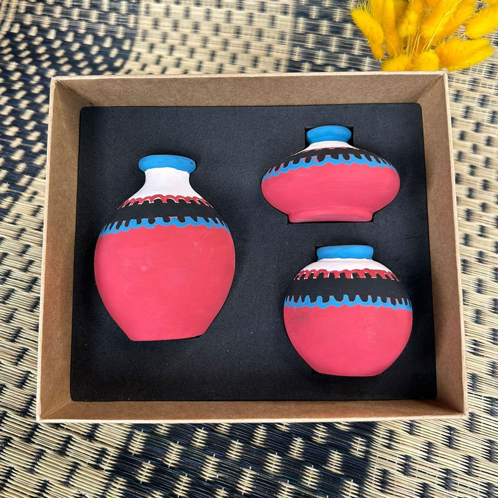 Handmade Miniature Terracotta pots are unique works of art, skilfully crafted and painted by artisans. Display them as decorative pieces or use them to hold small plants or fragrance sticks – they bring charm and creativity to any space.
